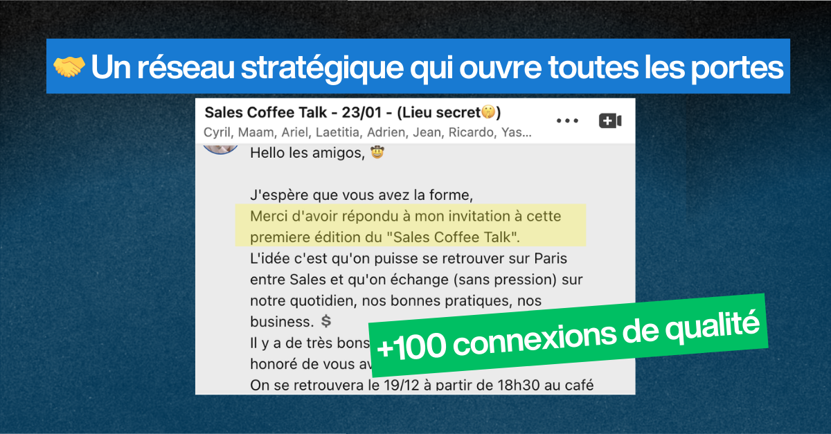 ✔️ Échange avec des entrepreneurs au même niveau que toi (ou au-dessus)