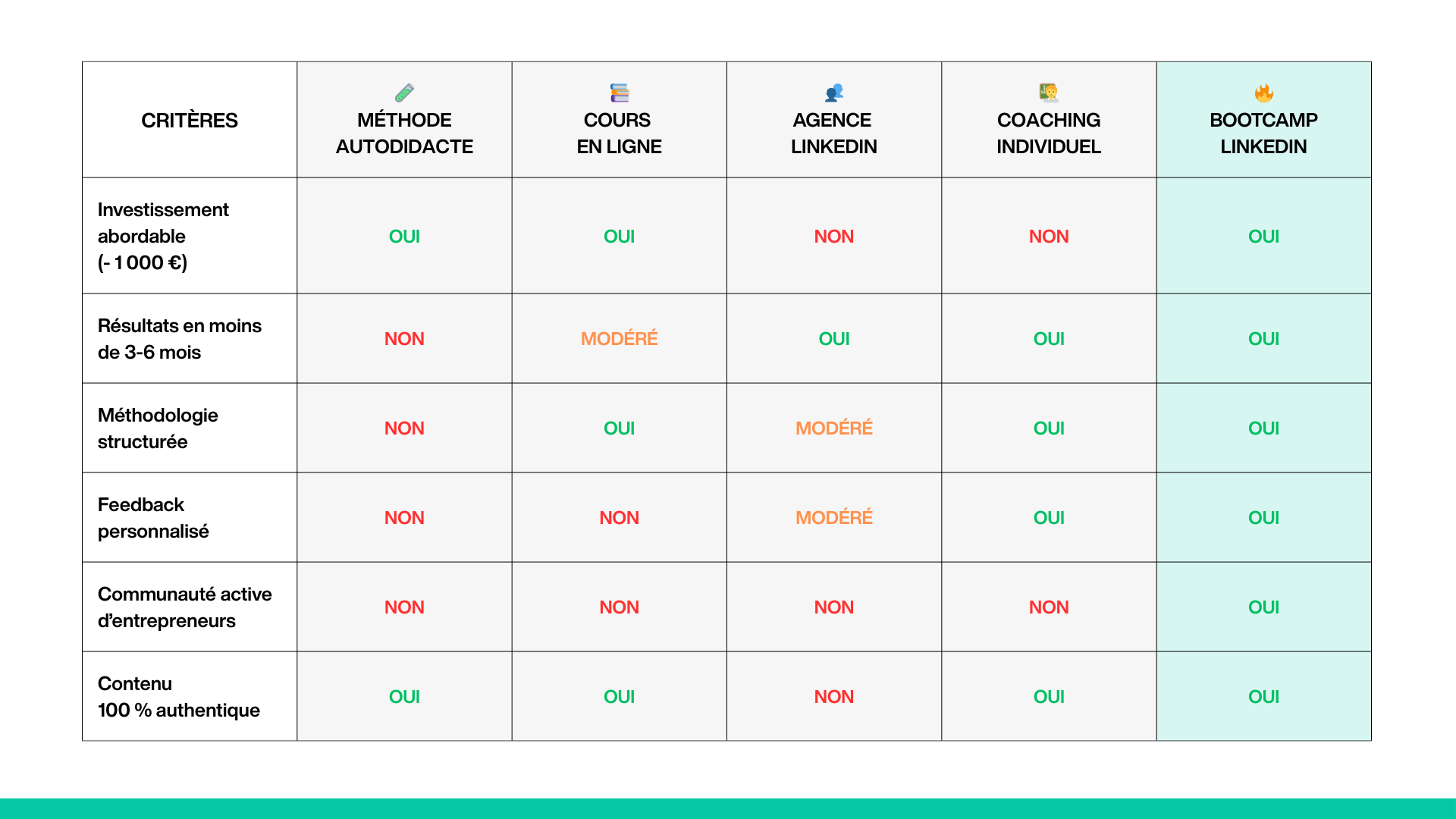 💡 À la fin du Bootcamp, vous savez attirer et convertir des clients sur LinkedIn sans prospecter à froid.