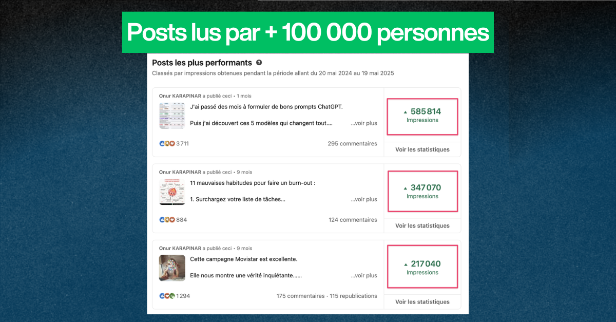 ✅ Plus de 23 000 abonnés et 12 millions de vues sur LinkedIn.